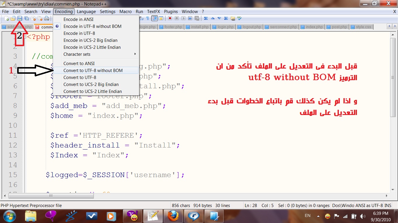 Relawda كتب:??? ??? ??????? ??????? ?? ???????? ????? ?????? ?? ????????, ? ???? ????? ?? ???? ????????? ???????? utf-8 without BOM.