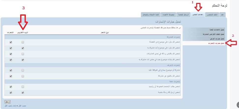 توقف التنبيهات عن الرسائل الواصلة لمدير المنتدى